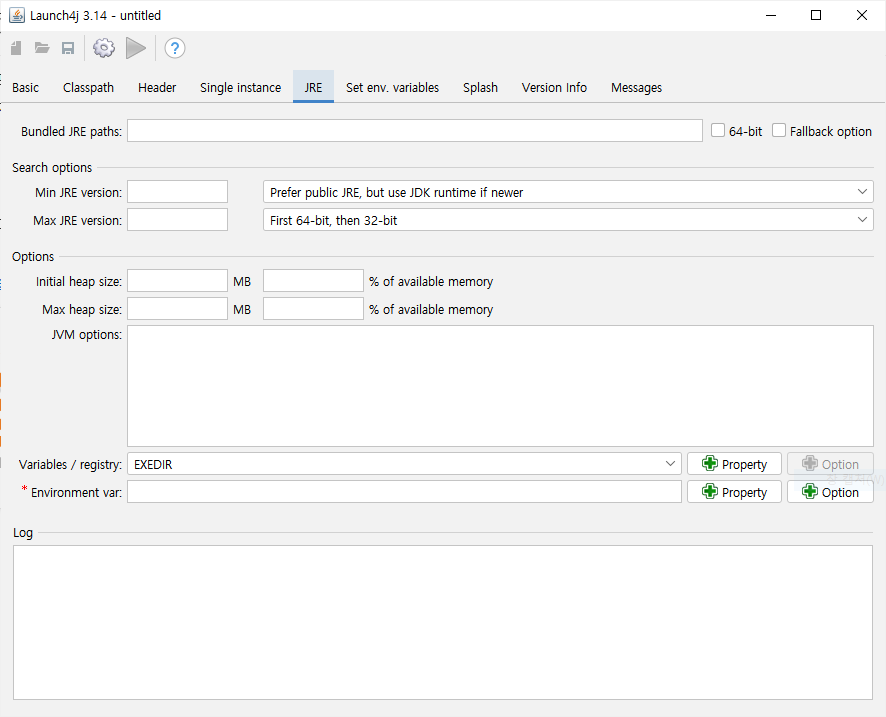 이 글과 launch4j 화면에서 보고 프로퍼티 추가했음.