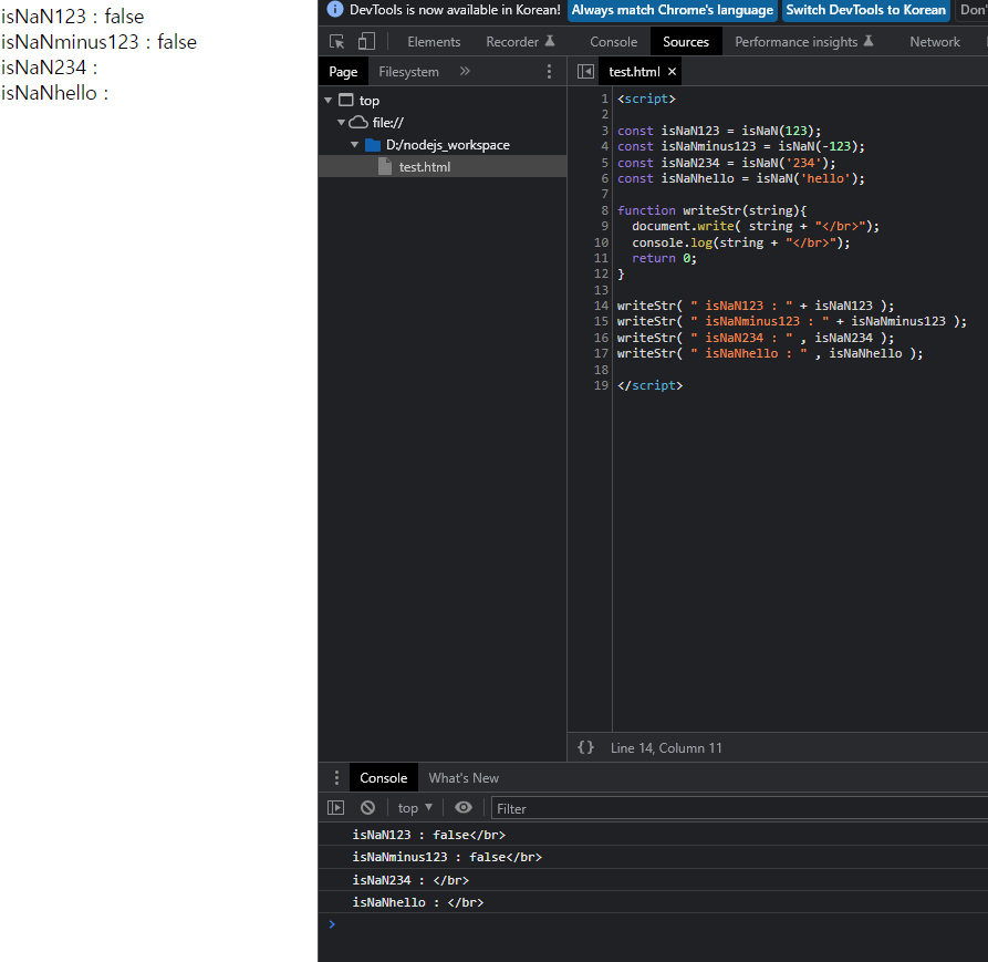 writeStr( " isNaNhello : " , isNaNhello );