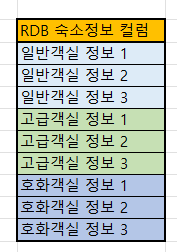 예를들어 RDB로 객실 정보를 숙소테이블에서 관리할때